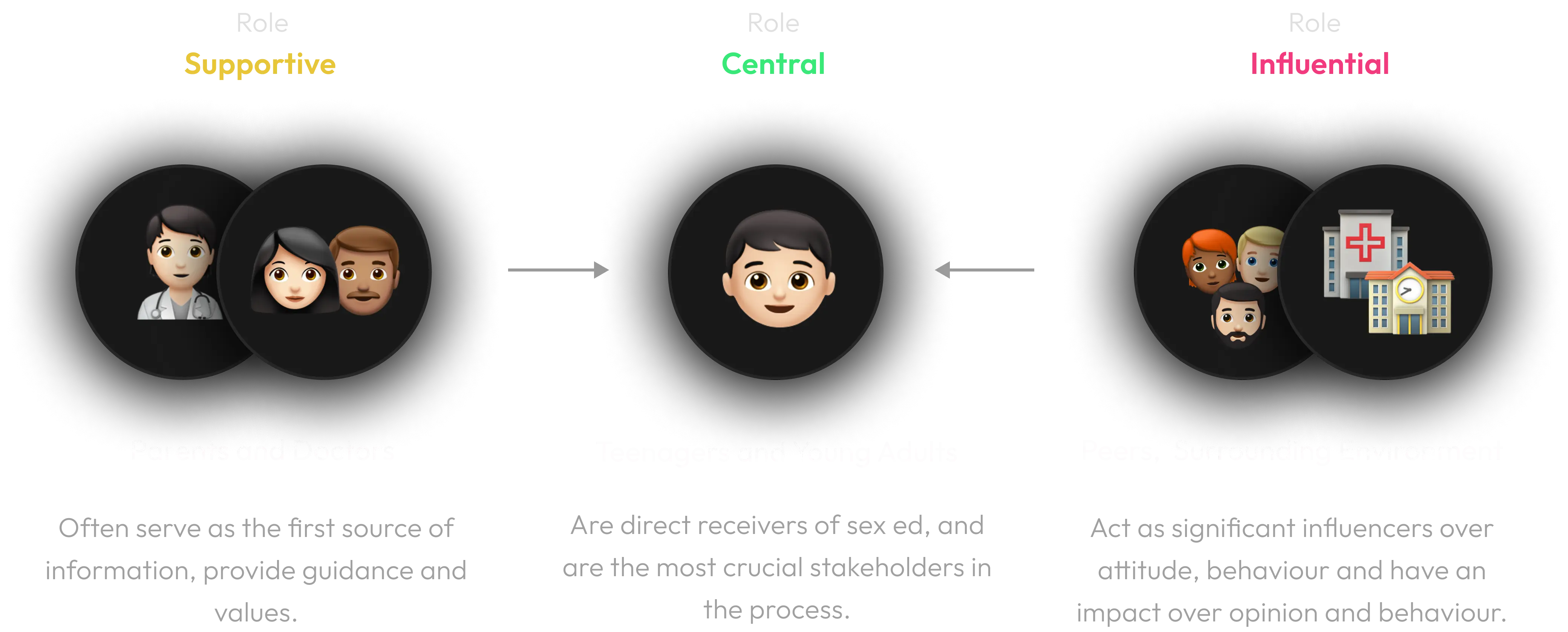 Our team identified stakeholders involved during the sex education impartment that were directly or indirectly influences the learning experience.