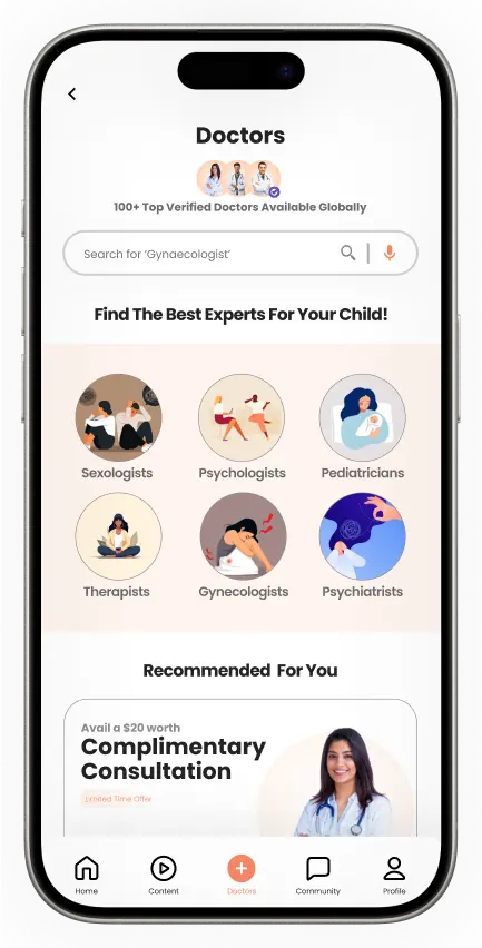A doctor booking feature that enables parents to schedule appointments and consultations with different specialists and health professionals for their children.